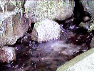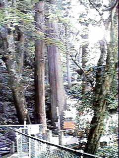 箱島不動尊の象徴である杉の大木。その下からおびただしいほどの湧水があふれています。その水量は15メートルも行かないうちに涸れたダムに出現した瀧を形成するほどです。